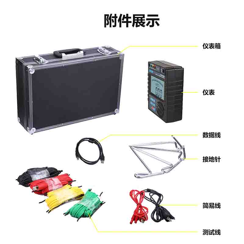 ETCR3000B接地電阻/土壤電阻率測試儀由主機、數據上傳軟件、測試線、輔助接地棒、通訊線等組成。主機超大LCD顯示,白屏背光,棒圖指示,一目了然。存儲功能,存儲300組數據,通過USB接口數據上傳軟件實現歷史查詢與在線實時監測功能,動態顯示,告警指示,具有歷史數據讀取、查閱、保存、報表、打印等功能。