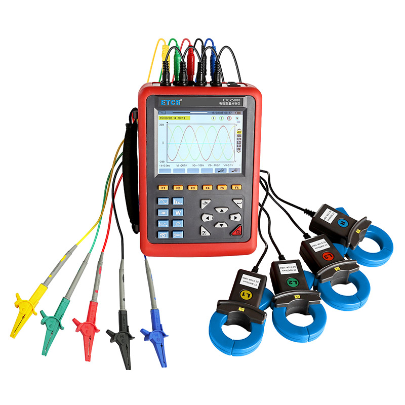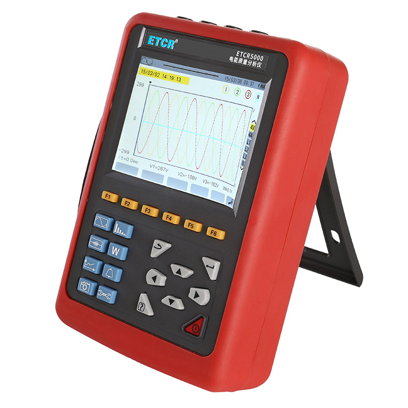 ETCR5000電能質量分析儀又稱電力質量分析儀、電力參數測試儀、諧波分析儀,是一款專為現場測試三相電能參數的多功能、智能化綜合型測試儀器。可同時測量4路電流(ABC三相及中性線電流),4路電壓(ABC三相電壓及中性線對地電壓)、電流電壓的峰值、一段時間內的最大最小值、三相不平衡度、短時電壓閃變、變壓器K因數、有功功率、無功功率、視在功率、功率因數、位移功率因數、有功電能、無功電能、視在電能、諧波比、總諧波失真度等;顯示電流電壓的實時波形、相量圖、諧波比柱形圖;動態(tài)捕捉電壓電流瞬時變化,監(jiān)測啟動電流,監(jiān)測各電力參數并生成告警列表,長時間記錄測試數據并生成趨勢曲線圖等功能。適用于電力、石化、冶金、鐵路、工礦企業(yè)、科研院校、計量部門等。