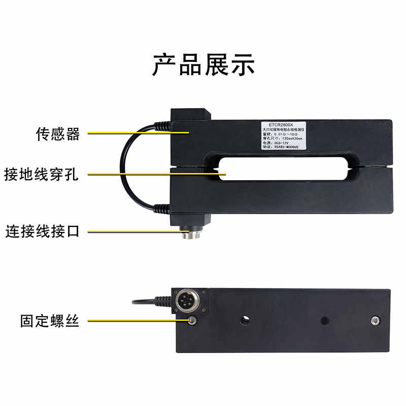 3、超大口徑傳感器,適合130mm寬扁鋼地線使用。