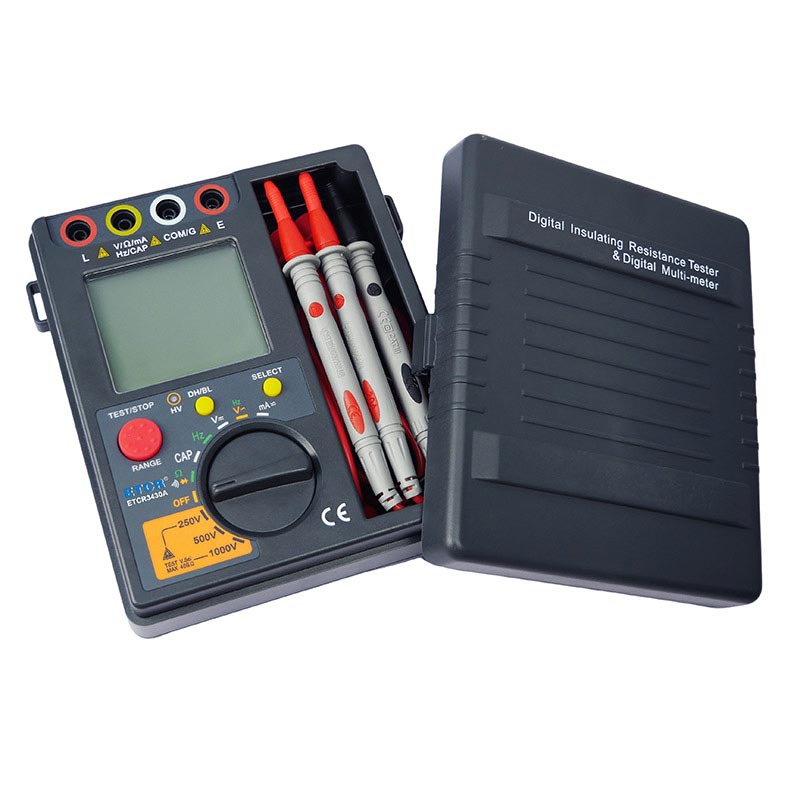 | ETCR3430B高壓絕緣電阻萬用表 | 500V/1000V/2500V | 0.5MΩ~50GΩ | 1mA MAX | DC:0V~1000V | AC:0V~700V | 0nF~40mF |