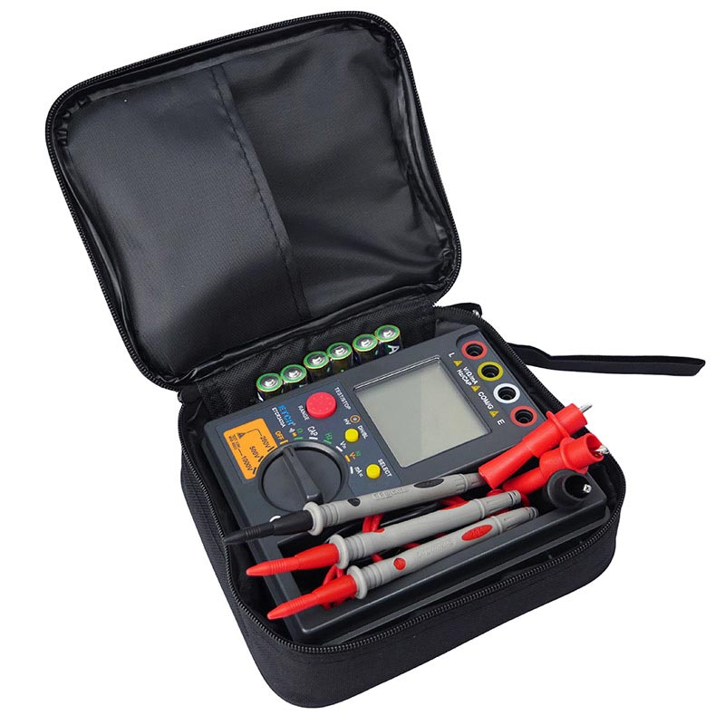本產品是一款絕緣電阻萬用表。其功能齊全,準確度高、操作可靠、使用方便。絕緣測試電壓可切換。普通絕緣電阻表不能測量自身輸出的高壓,在絕緣電阻表輸出高壓不符合額定值時,用戶不容易發現,以至有時測量結果偏差過大,造成安全隱患,可適時監測輸出高壓,用戶在任何時候都能觀察到儀表實際輸出的測量電壓,有效避免因輸出電壓不符合額定值要求而造成的誤判。儀表測量范圍最高可達到40GΩ,可根據需要設置測量時間,測量完畢后自動保持測量結果。數字多用表功能有交直流電壓、電流、電阻、電容、頻率、二極管及通斷測量等,數字萬用表功能和絕緣電阻表功能是完全分開的,在使用萬用表功能時,不必擔心會被絕緣電阻表產生的高壓電擊。本產品適用于測量變壓器、電機、電纜、開關、電器等各種電氣設備及絕緣材料的絕緣電阻,對各種電氣設備進行保養維修、試驗及檢定。它結構精巧,攜帶方便,是您理想的電工、電子測試儀表。