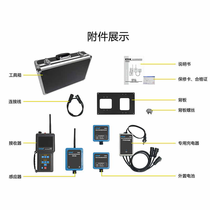 ETCR1900高壓近電防觸碰智能預(yù)警裝置由感應(yīng)器、外置電池、接收器、藍(lán)牙APP組成。感應(yīng)器采用非接觸感應(yīng)技術(shù)用于監(jiān)測(cè)高壓電場(chǎng),接收器接受感應(yīng)器發(fā)送的監(jiān)測(cè)信號(hào),當(dāng)電場(chǎng)強(qiáng)度達(dá)到設(shè)定的報(bào)警值時(shí),觸發(fā)報(bào)警功能發(fā)出聲光報(bào)警及語(yǔ)音報(bào)警。感應(yīng)器與接收器采用無(wú)線通訊,傳輸距離200米。裝置具有報(bào)警靈敏度調(diào)節(jié)和邊界報(bào)警功能,用戶可在接收器設(shè)置報(bào)警靈敏度或自設(shè)定報(bào)警距離,以適應(yīng)復(fù)雜電場(chǎng)的環(huán)境。接收器具有485接口及藍(lán)牙功能,便于用戶二次開發(fā)。移動(dòng)終端安裝APP后,可查看報(bào)警信號(hào)或設(shè)置報(bào)警參數(shù)。