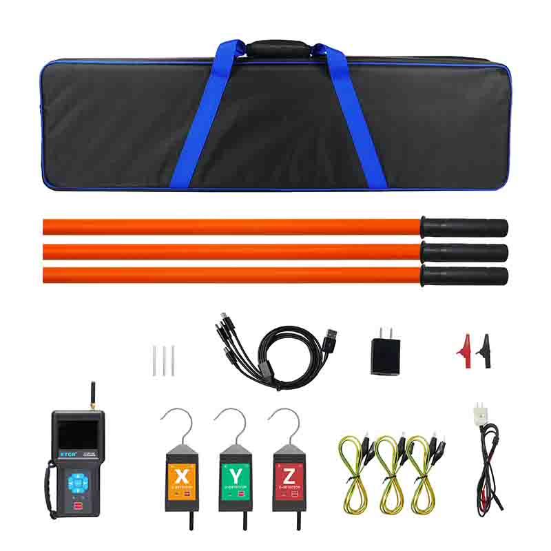 ETCR1050無線高壓相序測試儀由主機、3個探測器、伸縮絕緣桿、數據上傳軟件、USB通訊線等組成,主機采用3.5寸真彩液晶屏,可以同屏顯示相位、頻率、相序及核相結果,向量圖指示、相位指示清晰直觀,具有“X信號正常、Y信號正常、Z信號正常、正相序、反相序、同相、異相”等語音提示功能,使測試更簡單輕松。儀表有USB通信接口,存儲數據可上傳電腦進行歷史數據讀取、查閱、保存、打印。