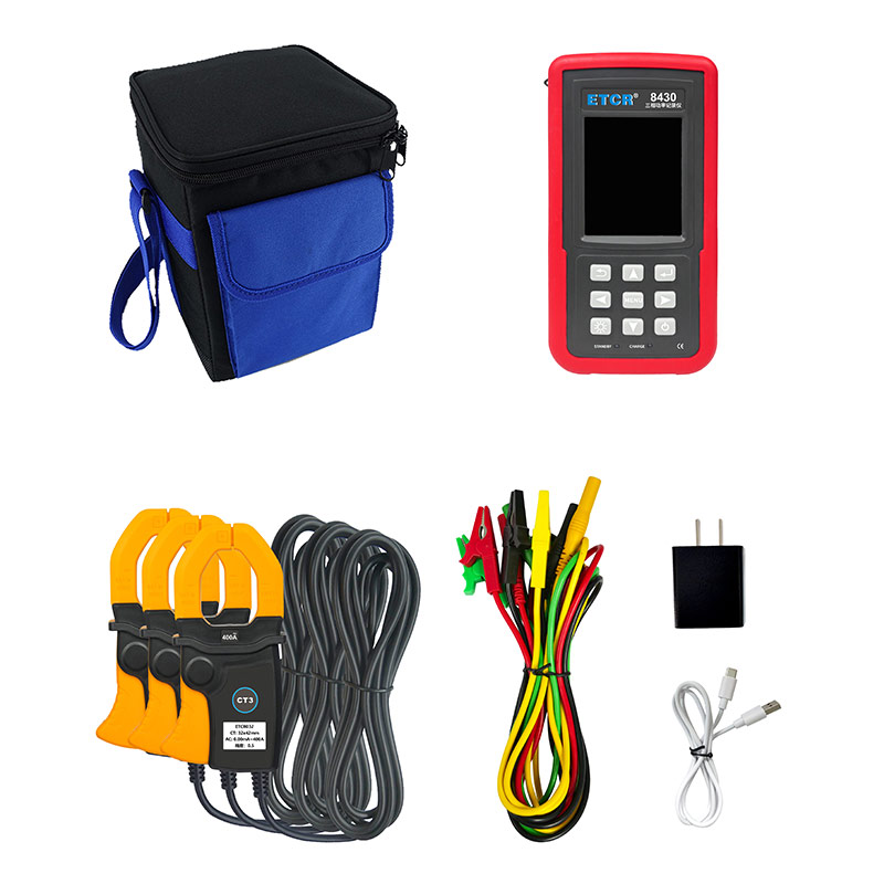 隨機附件 | 主機1件;互感器1個(ETCR8400)/3個(ETCR8430);電壓輸入線2條(ETCR8400)/4條(ETCR8430);數(shù)據(jù)線1個;電源適配器1個;工具包1件 |