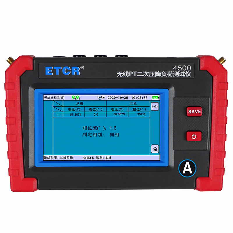ETCR4500無線PT壓降負荷測試儀采用5寸觸摸彩屏、中文界面、功能直達、自動測量、操作簡易快捷,準確可靠,儀表采用大容量可充電鋰電池、具有數據存儲、USB接口數據上傳導出等功能,儀表具有支持安卓系統的藍牙通訊,可在手機進行測試或查看測試記錄。本儀器采用專用計量芯片,具備非常高的電參數測量精度,能夠實時顯示待測參數的變化,同時具備一鍵保存數據的功能。產品操作簡單、使用方便、測量快速、穩定、結果可靠,是電力系統電能計量和繼電保護專業,進行二次回路現場檢測的新一代儀表,也廣泛適用于電氣設備制造、石油化工、鋼鐵冶金、鐵路電氣化、科研教學等部門。