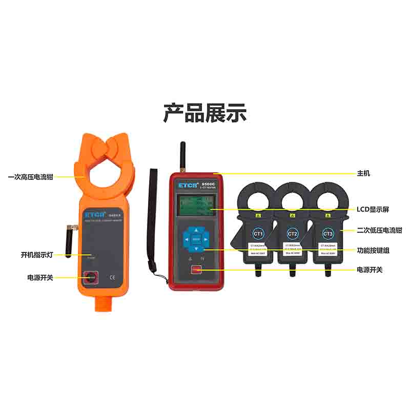 | ETCR9500B無線高低壓CT變比測試儀 | ≤35kV | 0.0A ~800A | 0.0mA~5A | 100m | 1~9999 | -- | |